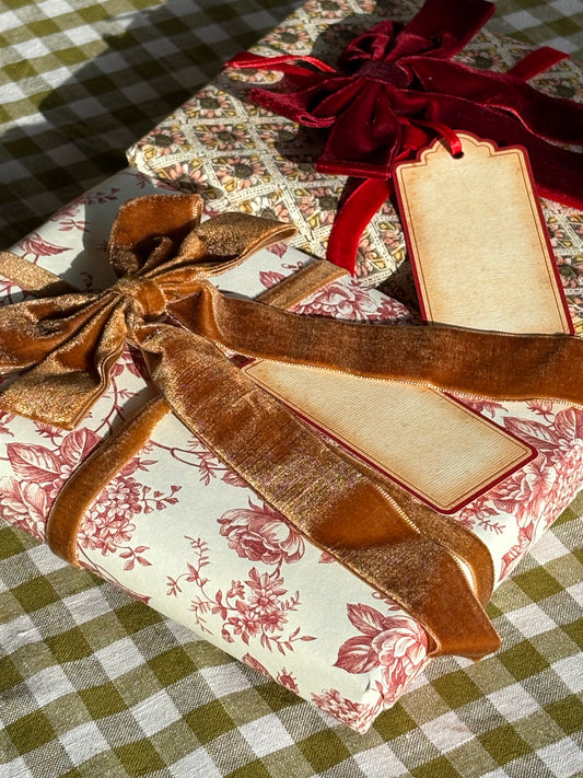 Blind Book wrapped in Italian Vintage Paper and Velvet Bow Jane Austin or Bronte