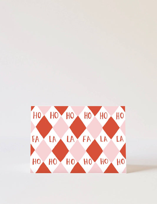 Harlequin Christmas Ho Ho Fa La Card Pink & Red