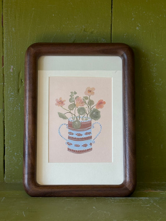 Peach Wooden Bobbin bobble Frame With BrittanySmith Studio Wildflower Print