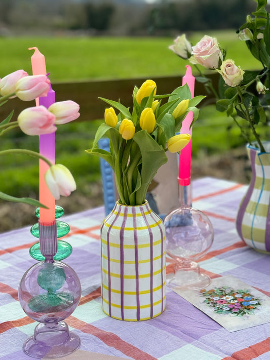 Burgundy & Beige Stripe Bow Jug - Noelle