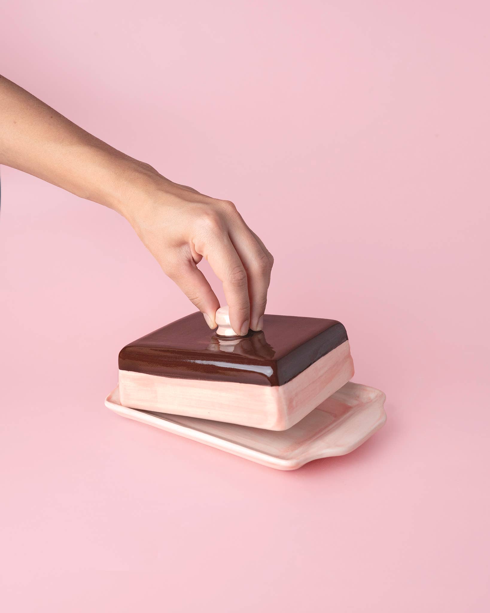 Artisanal Ceramic Butter Dish – Pink & Brown / CHOCOLATE