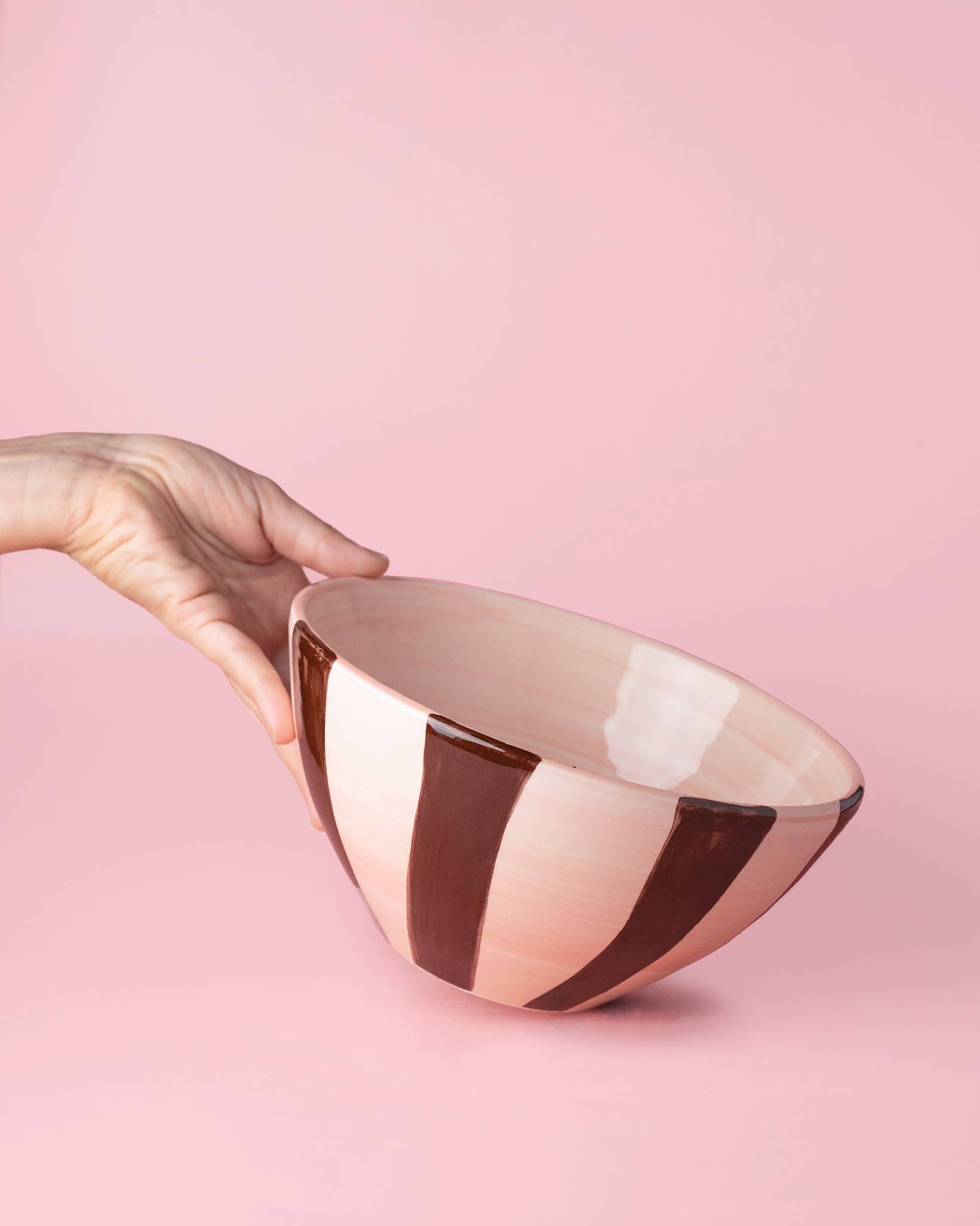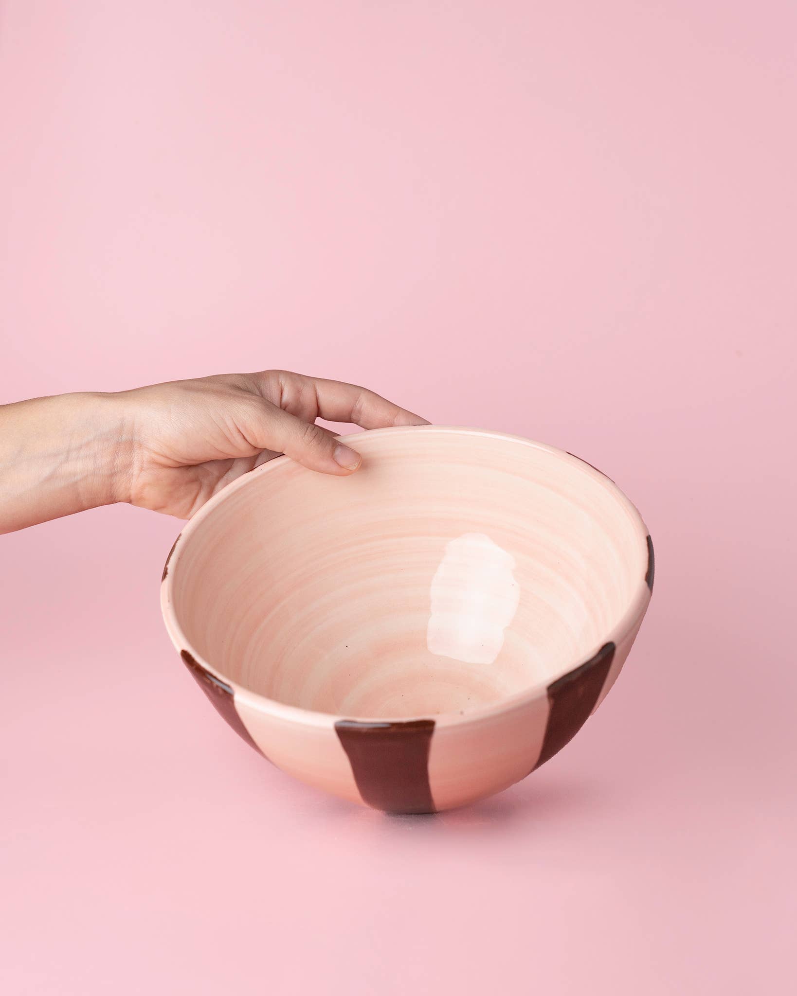 Ceramic salad bowl PINK AND CHOCOLATE BROWN
